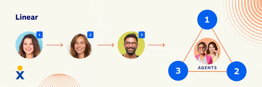 Distributes incoming phone calls evenly across available agents in rotation, ensuring that no single agent gets overloaded while others sit idle. The simplest and most common approach for teams handling general inbound call volume.