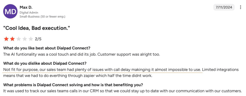 Reviews show Dialpad works best in specific setups: