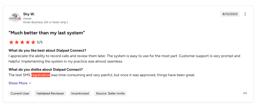 Some buyers run into walls faster than others. Large enterprises need global consistency, which Dialpad lacks. Reporting is also too thin for operations leaders tracking multiple offices. Compliance-heavy organizations should look for other service providers. Healthcare, finance, and other regulated sectors can’t risk unclear retention or SMS delays. IT-led shops are also not the target market, as Dialpad forces manual workarounds.