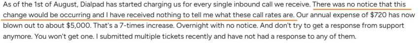 Dialpad can look cheap for a small business, but the add-ons pile up fast. Bigger accounts sometimes get bulk discounts, yet reviews point to hidden surcharges that push the bill higher.