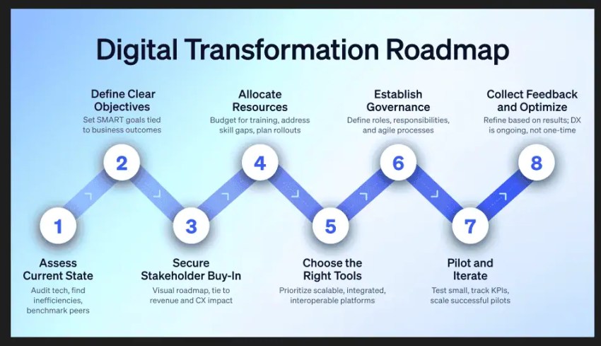Similarly, monitor customer feedback and key metrics, like CSAT and net promoter score (NPS), closely. Are your digital improvements actually enhancing their experience, or are you solving problems they didn’t have while creating new friction points? Use this feedback to continuously refine your roadmap.