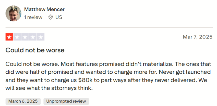 A recurring theme in third-party reviews is nickel-and-diming via add-ons and billing disputes, especially when the required scope grows post-pilot. Trustpilot complaints illustrate this perception; therefore, doing your due diligence regarding pricing is key.