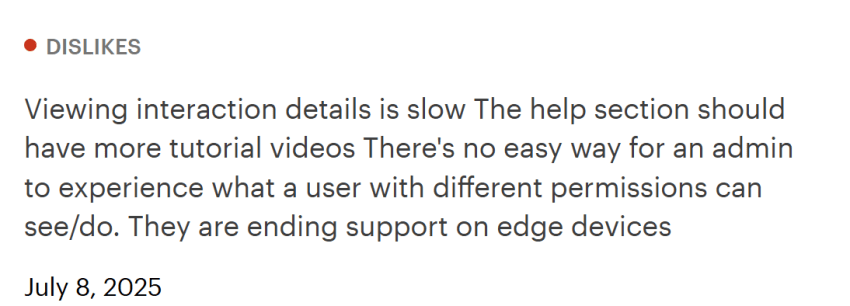 - “Had it for a year, ditched it, and used Verint instead.”