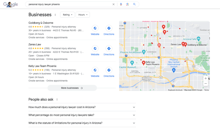 In reality, this means consumers fire up Google searches to look for a lawyer or attorney in their local area or with their specific needs in mind. If you’re lucky, they might have heard your brand on TV or radio and are trying to find your office.