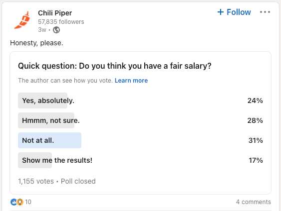 Take this Chili Piper poll from their LinkedIn account, for example: