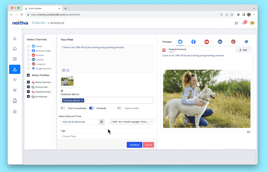Social media management tools like Nextiva provide invaluable insights into your audience’s demographics, interests, and behaviors across multiple networks, including Twitter (now known as “X”), Facebook pages, LinkedIn, YouTube, and many more.
