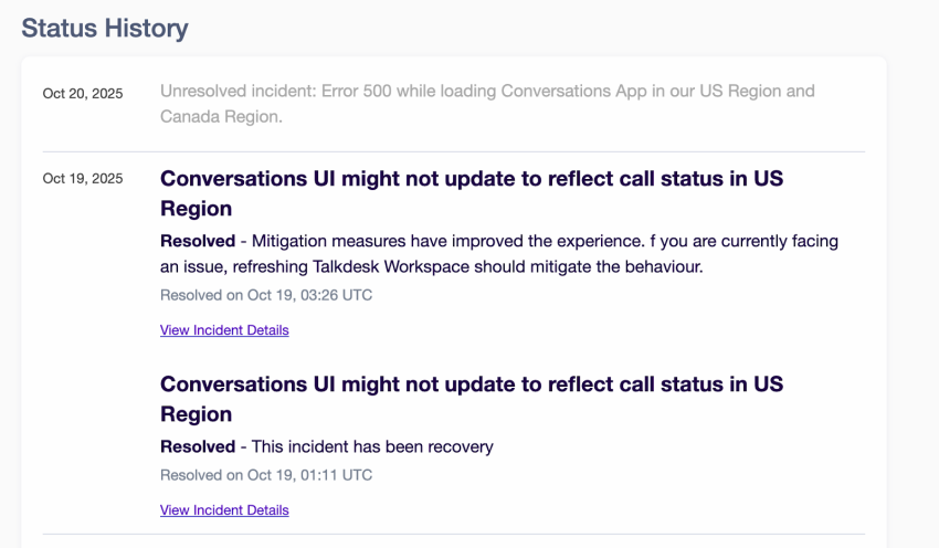 This near-perfect uptime stands in sharp contrast to one of the most persistent themes in user reviews: platform instability. Numerous reports on G2 and Gartner, and even sections of Talkdesk’s own knowledge base, cite frequent dropped calls, system freezes during active conversations, and lagging dashboards.