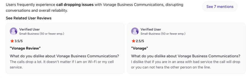 Vonage struggles with mobile reliability, hidden fees, inconsistent support, and reporting that lags behind modern UC platforms. These drawbacks turn into recurring frustrations for growing businesses.
