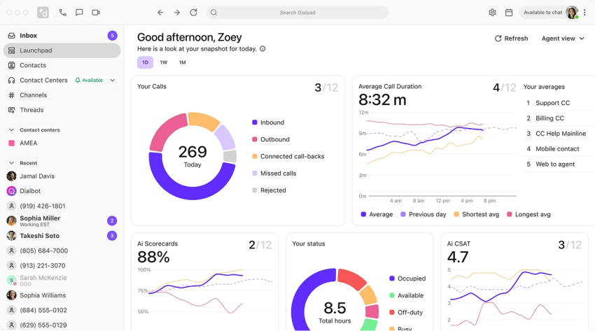 Dialpad is a newer, more modern alternative that emphasizes AI and user-friendly design. Its platform integrates real-time transcription, call summaries, analytics, and AI-driven insights to improve efficiency.