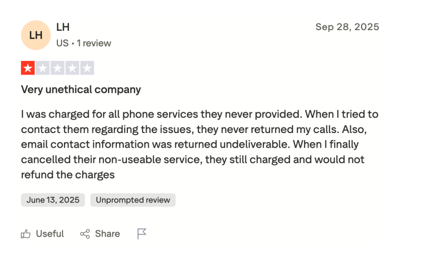 Many users complain that advertised rates (e.g., $9.99/mo) balloon over time due to built-in surcharges, taxes, or fee escalations. Trustpilot reviews reveal that users report their bills have increased unexpectedly.