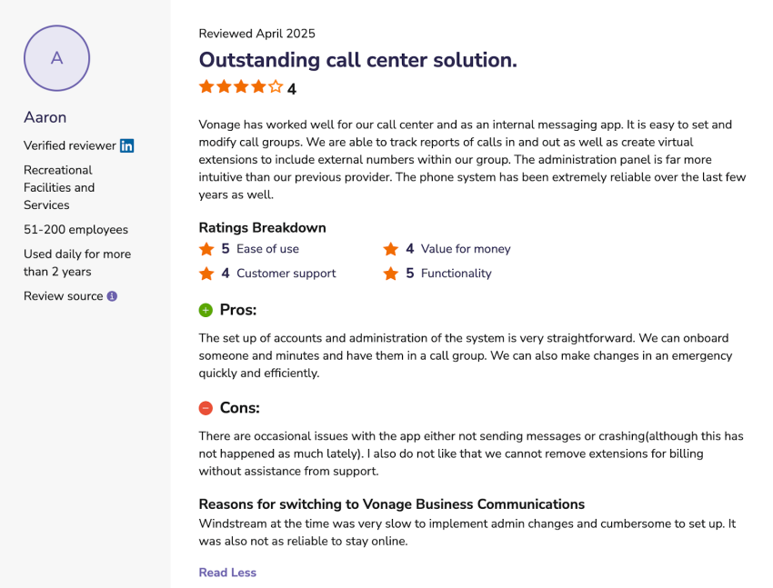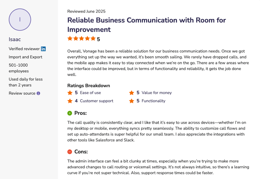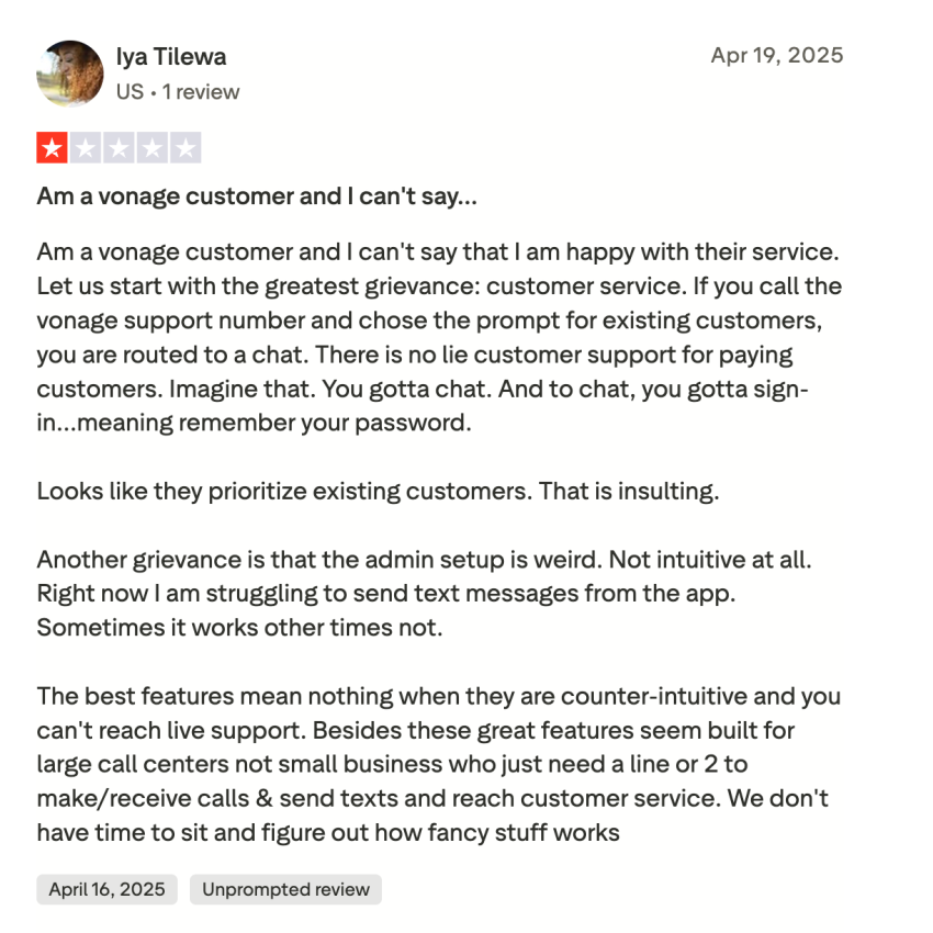 Vonage stands out as an accessible VoIP provider, offering straightforward setup, clean apps, and enough functionality for small businesses. Its biggest advantage is ease of use for non-technical teams. But the reviews make it clear that ease of use alone doesn’t guarantee long-term success.