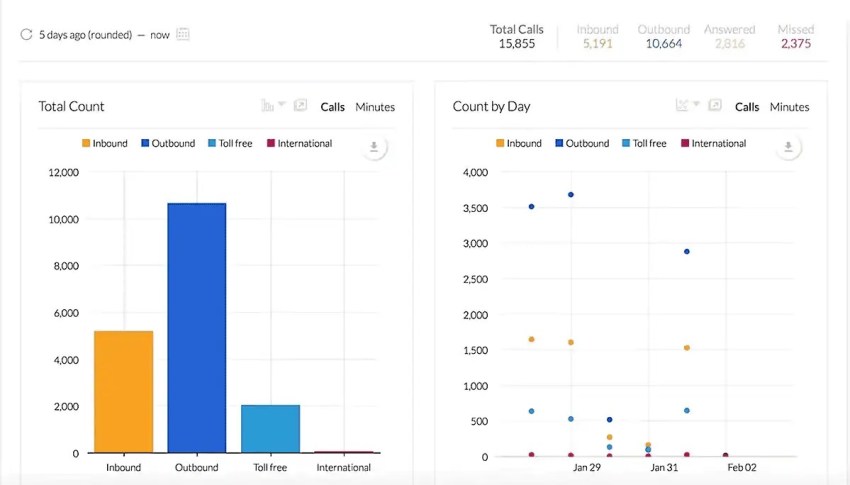 - Reporting and analytics: Helps track important metrics like call volume, connection rate, conversion rate, agent talk time, and call abandonment rate, which provide a clear picture of sales performance and identify optimization potential.