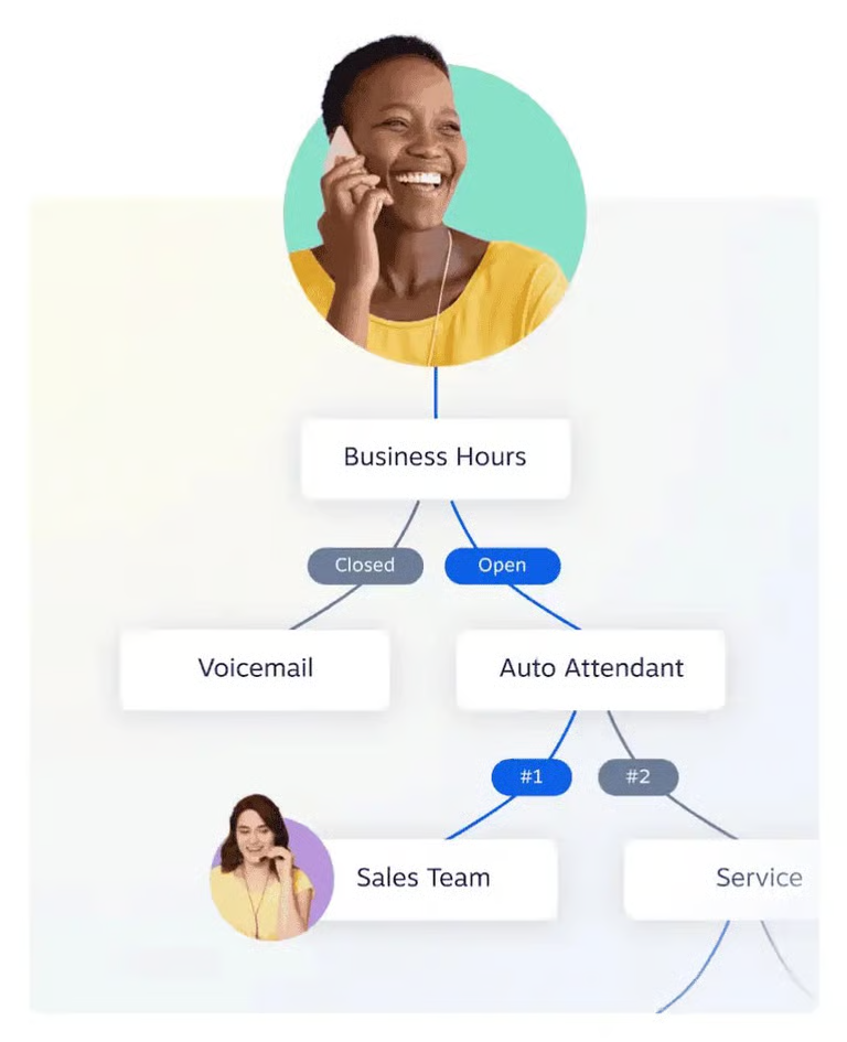 Call forwarding routes incoming calls to whichever device or team member you designate—a mobile phone, desk phone, or computer—based on rules you set in advance.