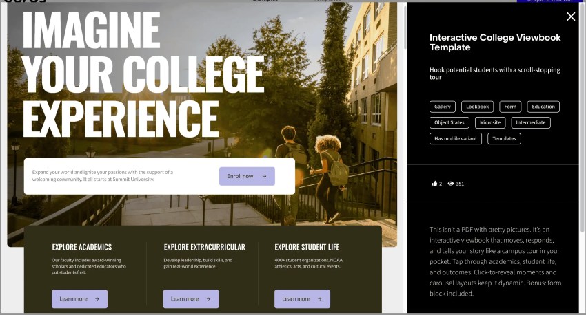 Ceros is a cloud-based design platform where you can create immersive, interactive content without having to know how to code. It’s ideal for turning static images—like PDFs or infographics—into scroll-based assets.