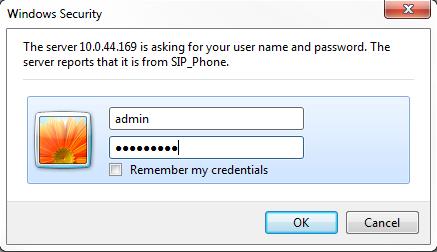 Navigate to the Phone’s IP Address - Enter admin as the username and adminpass as the password.